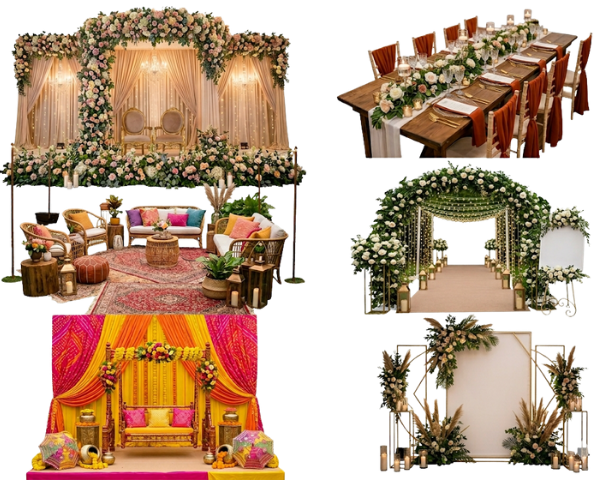 We use premium quality materials, stylish elements, and detailed finishing to create elegant, long-lasting, and visually stunning decor that enhances every event experience beautifully.